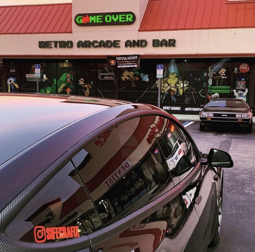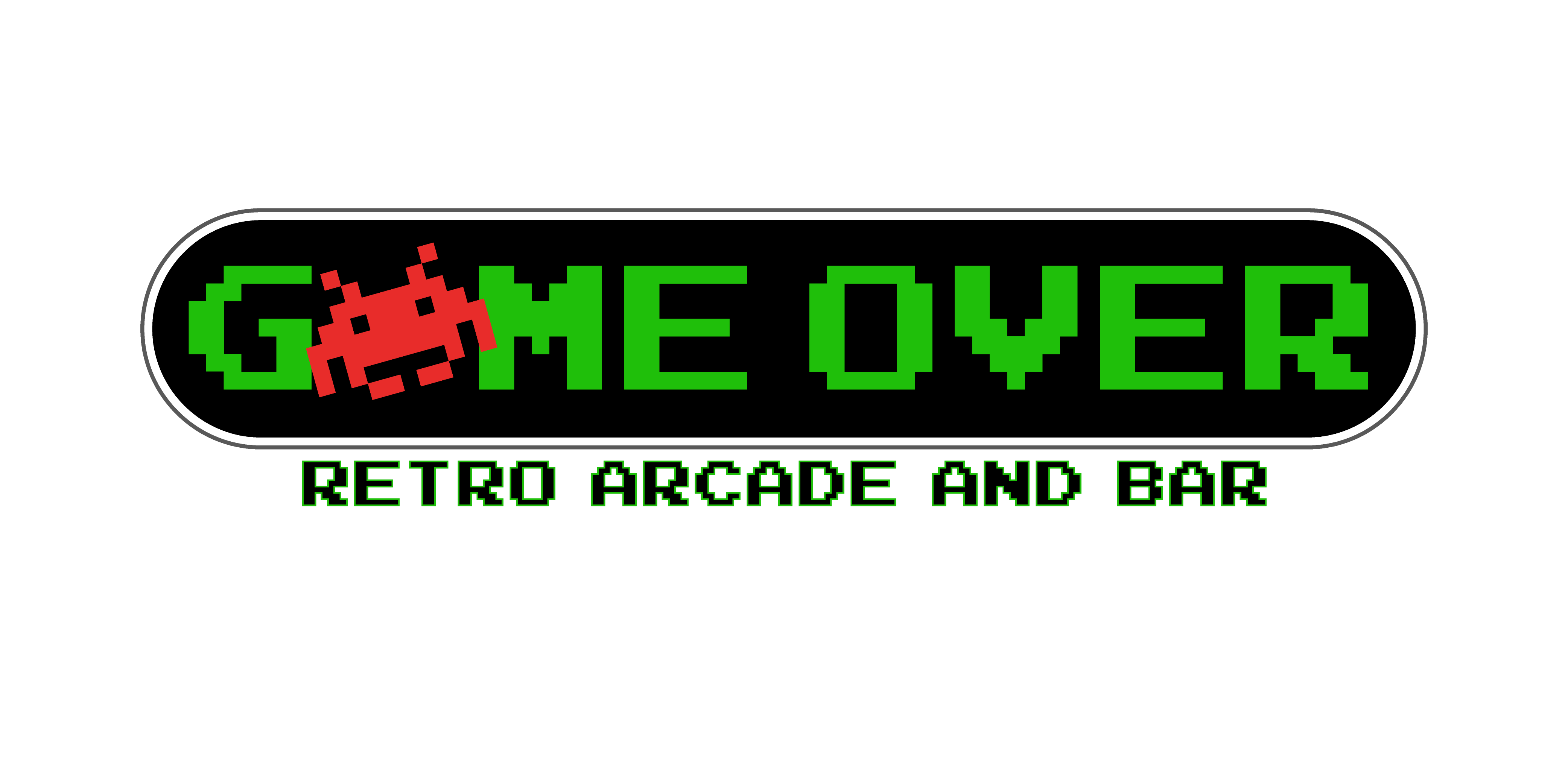 Branding for GameOver Retro Bar and Arcade.Logo design, Store front window art, Sign Design, Motion Graphics, Business cards, Flyers, Wall art.